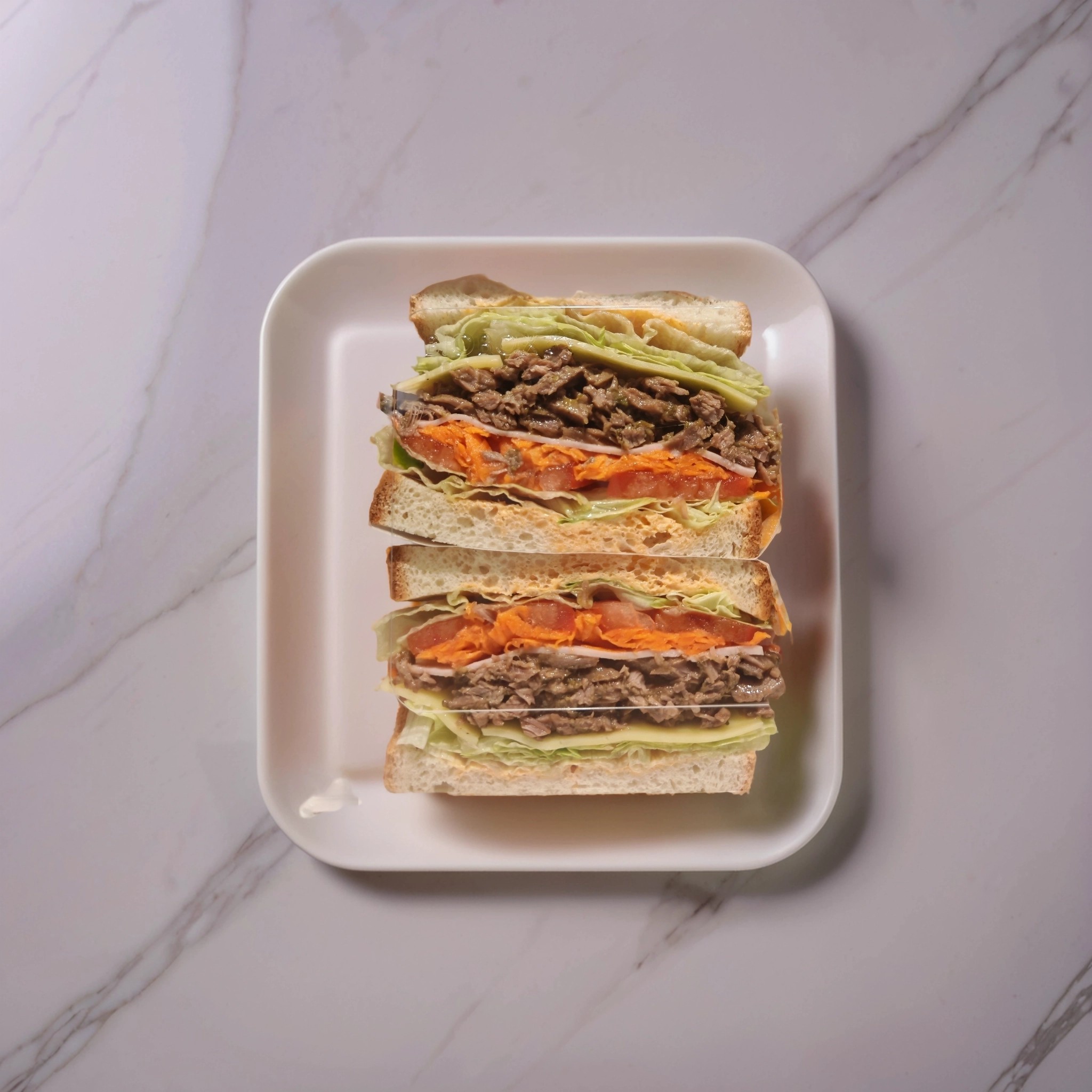 Сочный яркий вкус говядины в гармонии с хрустом свежих овощей – это сбалансированное блюдо, идеально подходящее для обеденного перерыва. Пикантность азиатских ноток пасты «Кочудян», утонченность корейского соевого соуса и свежесть овощей и салата делают этот сэндвич настоящим гастрономическим открытием!