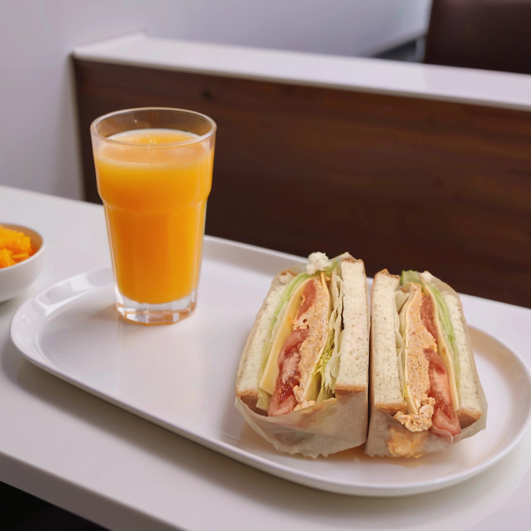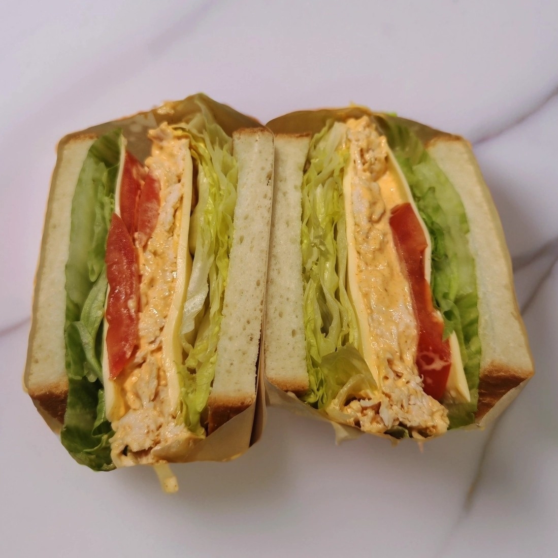 Откройте для себя вкуснейшее сочетание продуктов в нашем сэндвиче! Каждый ингредиент был выбран специально, чтобы подарить вам море удовольствия: ароматный хлеб, освежающий салат, спелые помидоры, сливочный сыр, нежная куриная грудка, оригинальный соус.